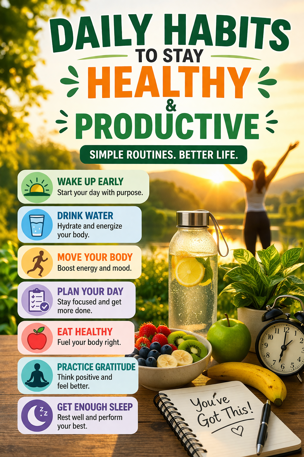 Build a healthier, more energized life with 25 simple daily habits. This practical guide helps you improve your routine, boost your energy, and create lasting results step by step.